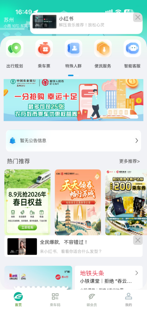 「蘇e行(Su e Xing)」とは蘇州地下鉄の公式アプリです。